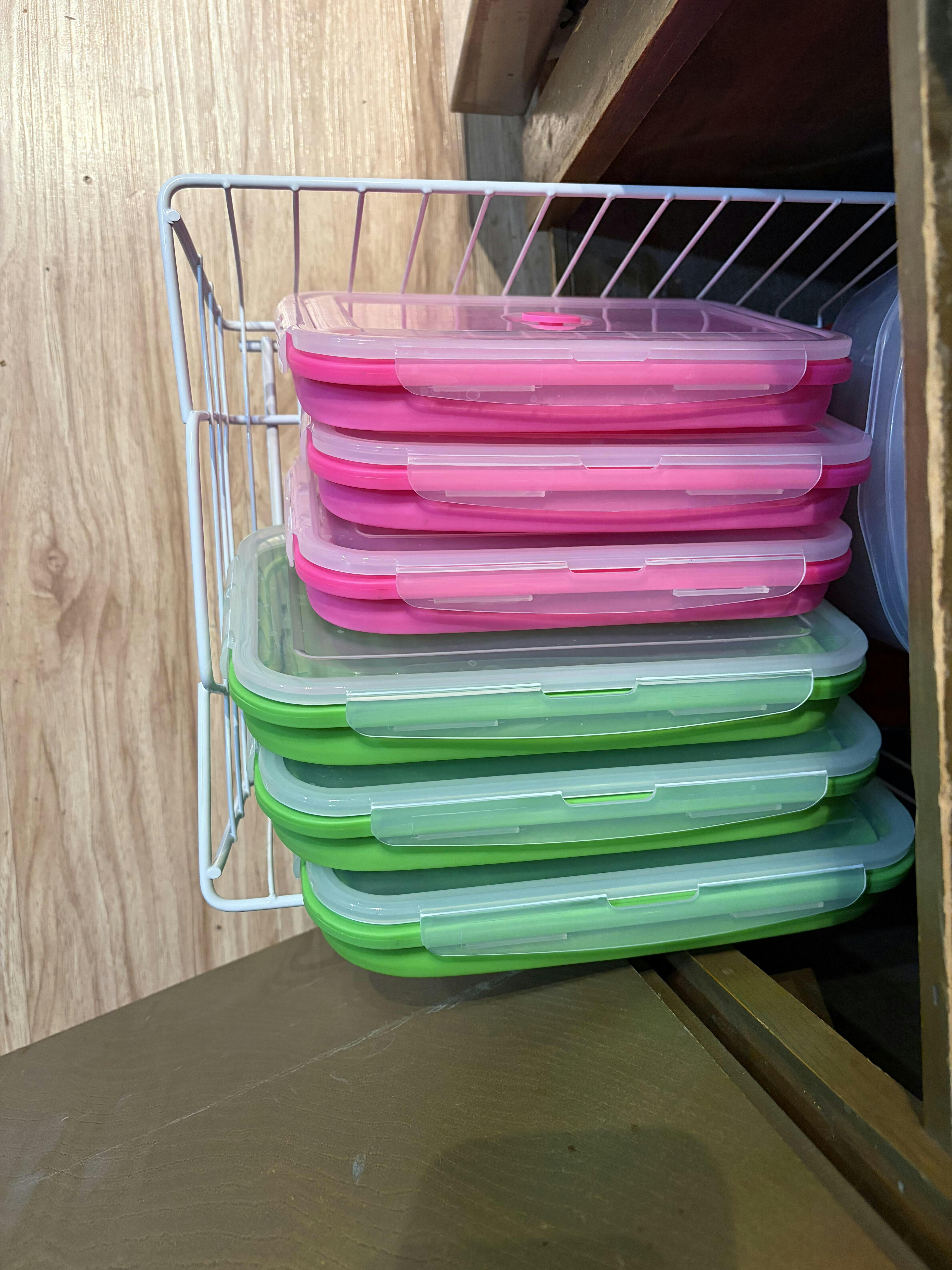 Plenty of room for our biggest leftover meals. Small space requirements for storage!